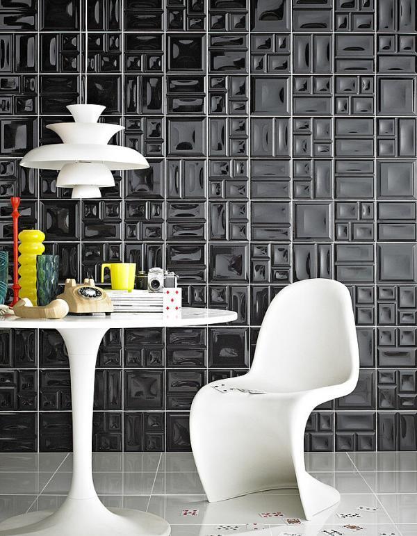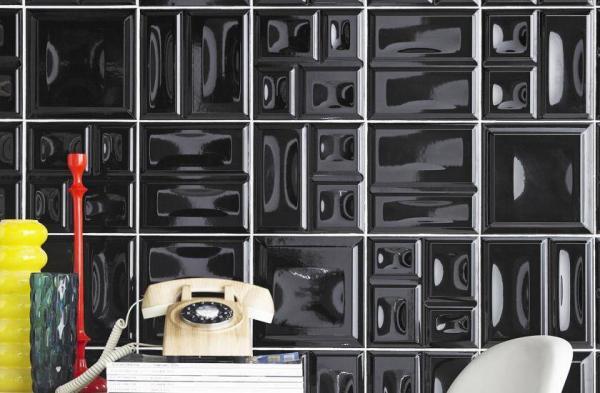 Produzidos na Espanh, os azulejos Magna Deco são formados por peças com variações de relevo, formando paginações únicas a cada projeto.